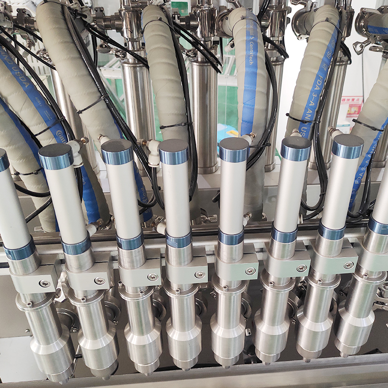 高粘(zhān)度的(de)醬料產品是運用多頭(tóu)醬料灌裝機才能(néng)完成的高難度(dù)灌裝運動(dòng),這(zhè)款八頭顆粒醬灌(guàn)裝機可適用於:辣(là)椒醬、火鍋底料、藤椒(jiāo)醬、黃豆醬、甜麵醬、蟹黃醬(jiàng)、香椿醬、草莓醬、花生(shēng)醬、牛肉醬、沙拉醬、黑(hēi)胡椒醬等產(chǎn)品的統一化灌裝。多頭(tóu)醬(jiàng)料灌裝機作為17·c18起草视频.27智能設(shè)備新研發的專業(yè)灌裝(zhuāng)設備(bèi),多(duō)年來通過不斷的升級創新與精密的設計,解決了(le)顆粒醬物料灌裝易(yì)堵塞、滴漏、定量不準(zhǔn)的行業痛點。